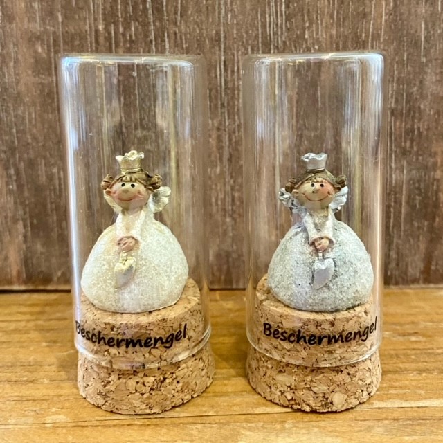 Kleine Beschermengel in glazen stolpje.