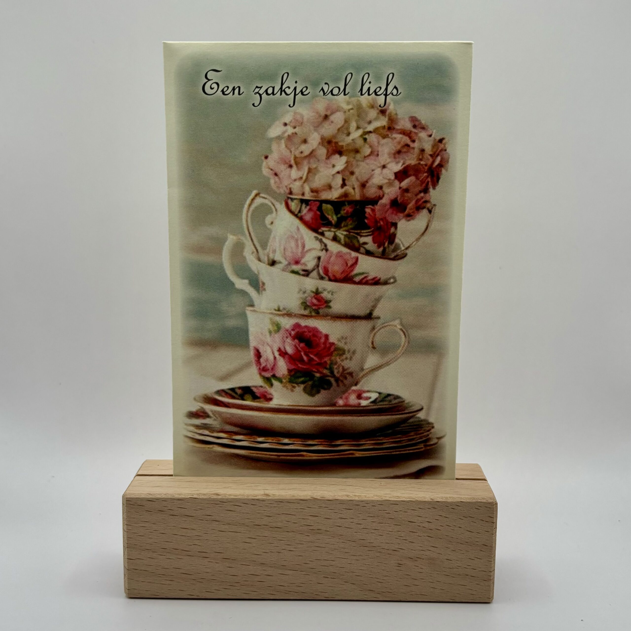 Mooi afgewerkt beukenhouten standaardje voor kaart, foto of gedichtje.