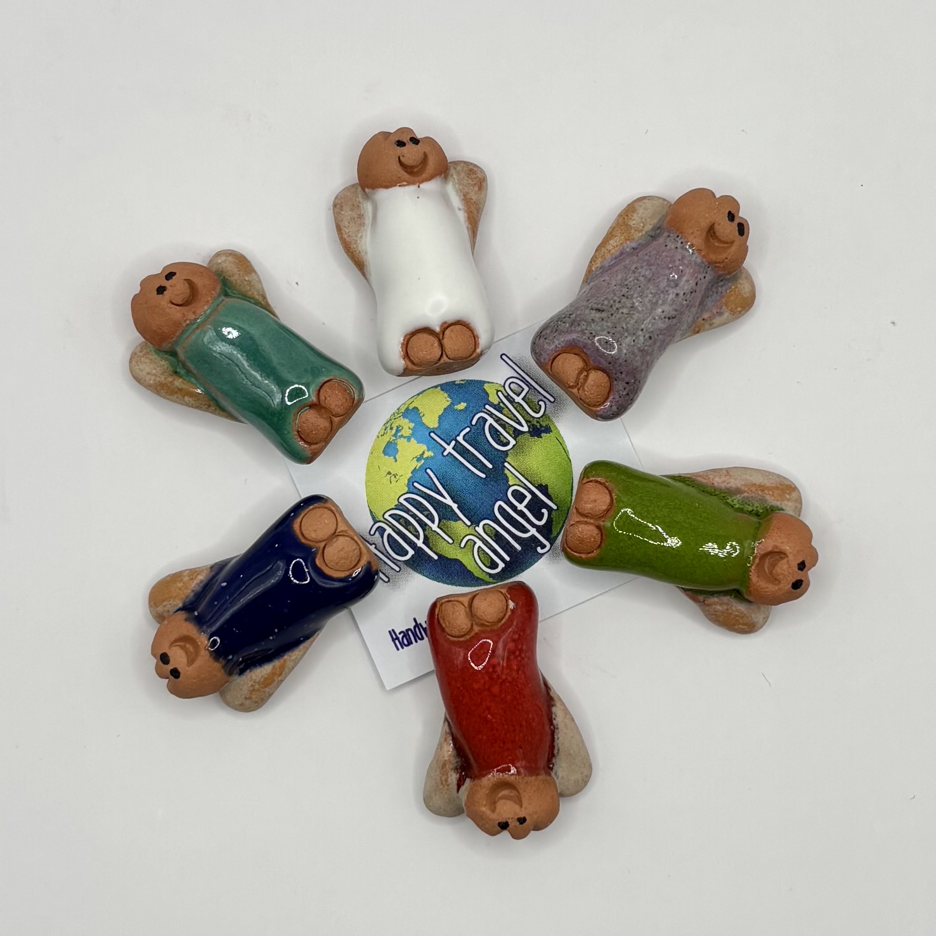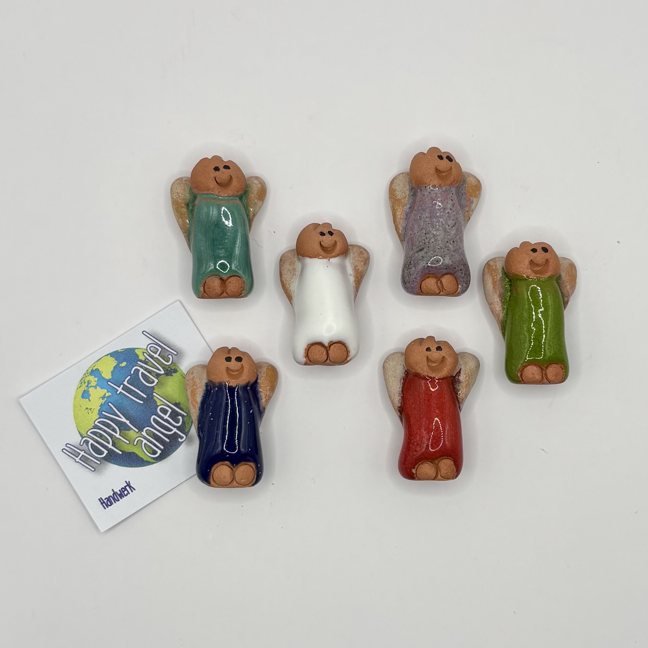 Lieve, handgemaakte beschermengel van keramiek om me te geven/nemen op reis. Het engeltjes is klein en zit in een handig wit tule zakje inclusief een klein kaartje. Verkrijgbaar in verschillende kleuren. Omdat het een handgemaakt product is, is niet één engeltje hetzelfde.