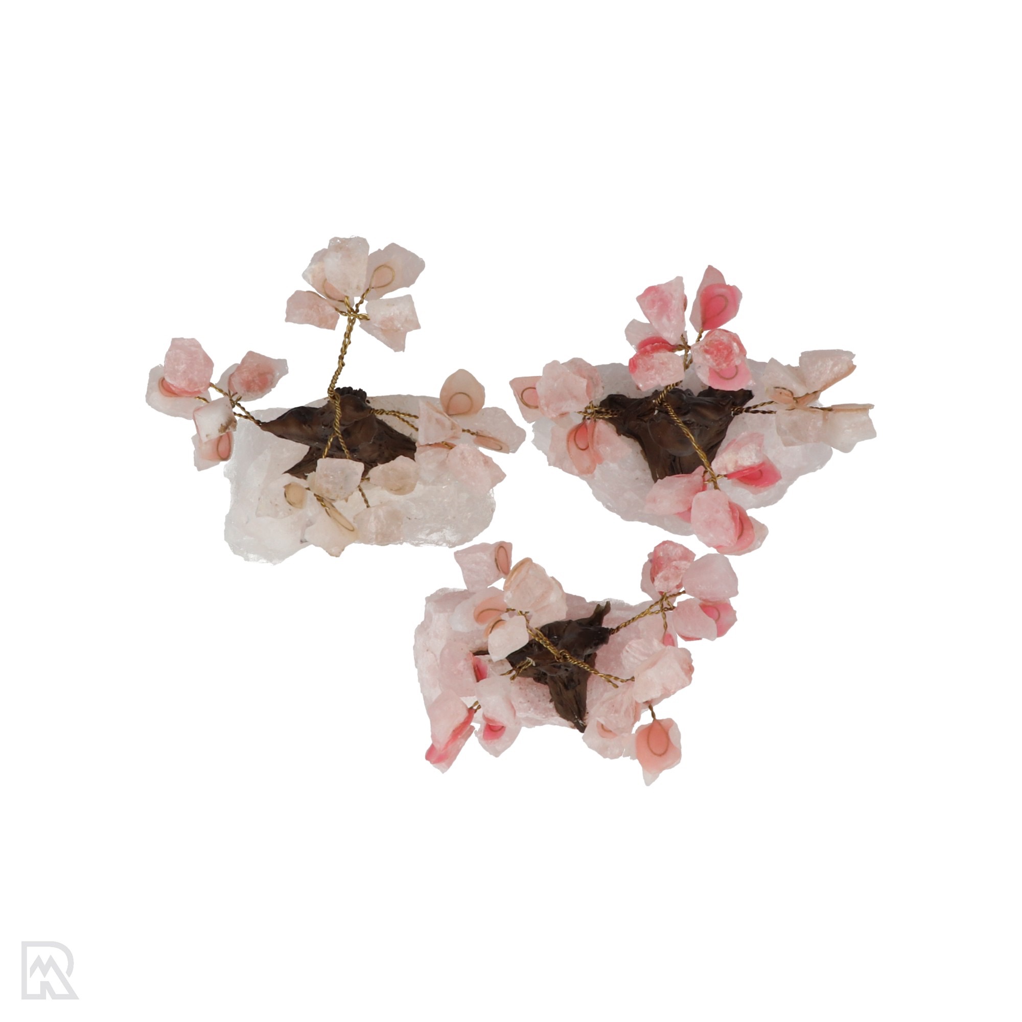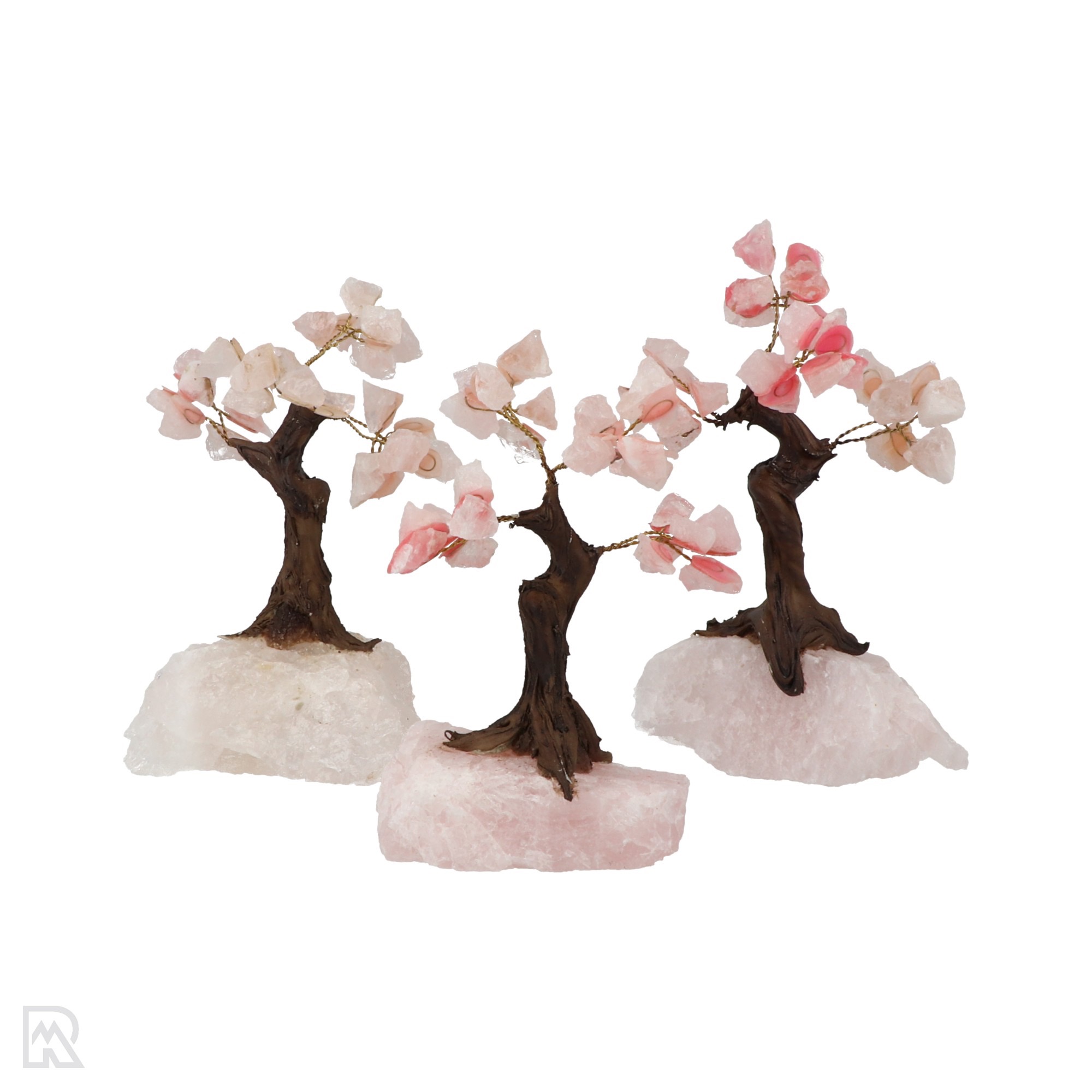 Prachtige levensboom van kleine stukjes rozenkwarts op staaldraad. Het boompje staat op een ruwe rozenkwarts of bergkristal. Omdat dit een natuurproduct is, zal elk boompje er anders uitzien en dus uniek zijn. De rozenkwarts is roze en komt uit Brazilië.