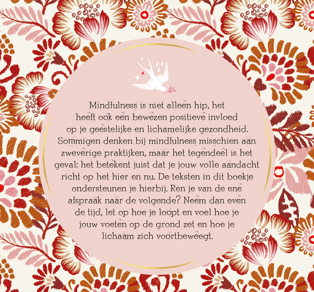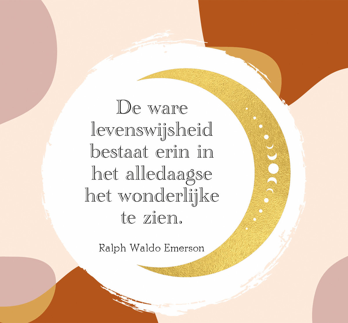 De tafelstaander is spiraal gebonden, is afgewerkt met goudfolie en zit in een stevig boxje.