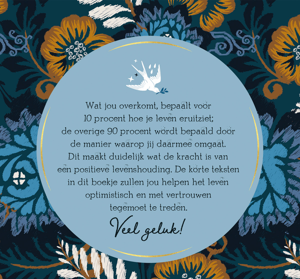 Zet deze tafelstaander op je bureau en sla iedere dag een blaadje om voor een positieve spreuk of tekst. Ze zullen je helpen het leven optimistisch en met vertrouwen tegemoet te treden. Een prachtig cadeau voor jezelf of om een ander blij mee te maken!
