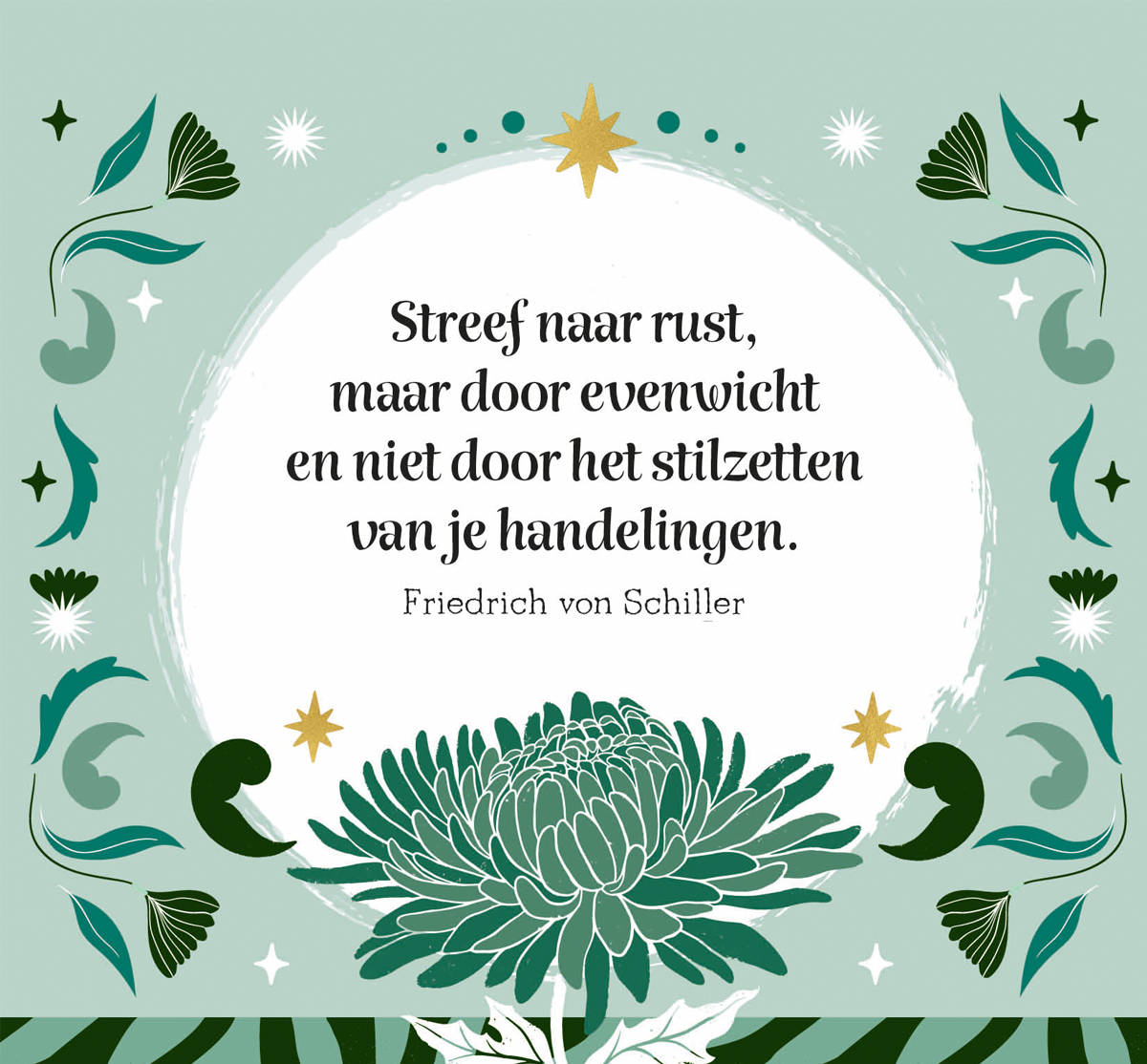 Zet deze tafelstaander op je bureau en sla iedere dag een blaadje om voor een rustgevende spreuk of tekst. Ze zullen je helpen rust te vinden te midden van de onrust van het moderne leven. Een prachtig cadeau voor jezelf of om een ander blij mee te maken!